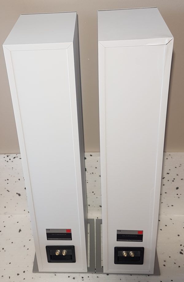 Stan wizualny – świetnie zachowana para, obudowy posiadają mało rzucające się w oczy ryski, jedna z kolumn (prawa na zdjęciach) ma delikatne odkształcenie okleiny na narożniku tylnym – zgodnie ze zdjęciami.