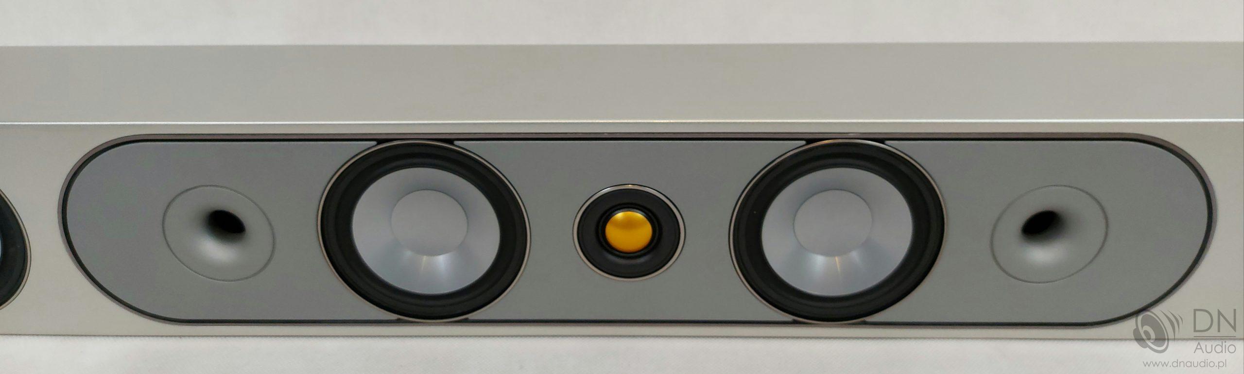 “W sekcji środkowej znajdują się dwa 100-milimetrowe (4 ”) przetworniki nisko-średniotonowe MMP II i 25-milimetrowy (1”) głośnik wysokotonowy C-CAM Gold Dome. W lewej i prawej sekcji kanału znajdują się pojedyncze przetworniki MMP II 100 mm (4 ”) i 25 mm (1”) głośniki wysokotonowe C-CAM Gold Dome.”