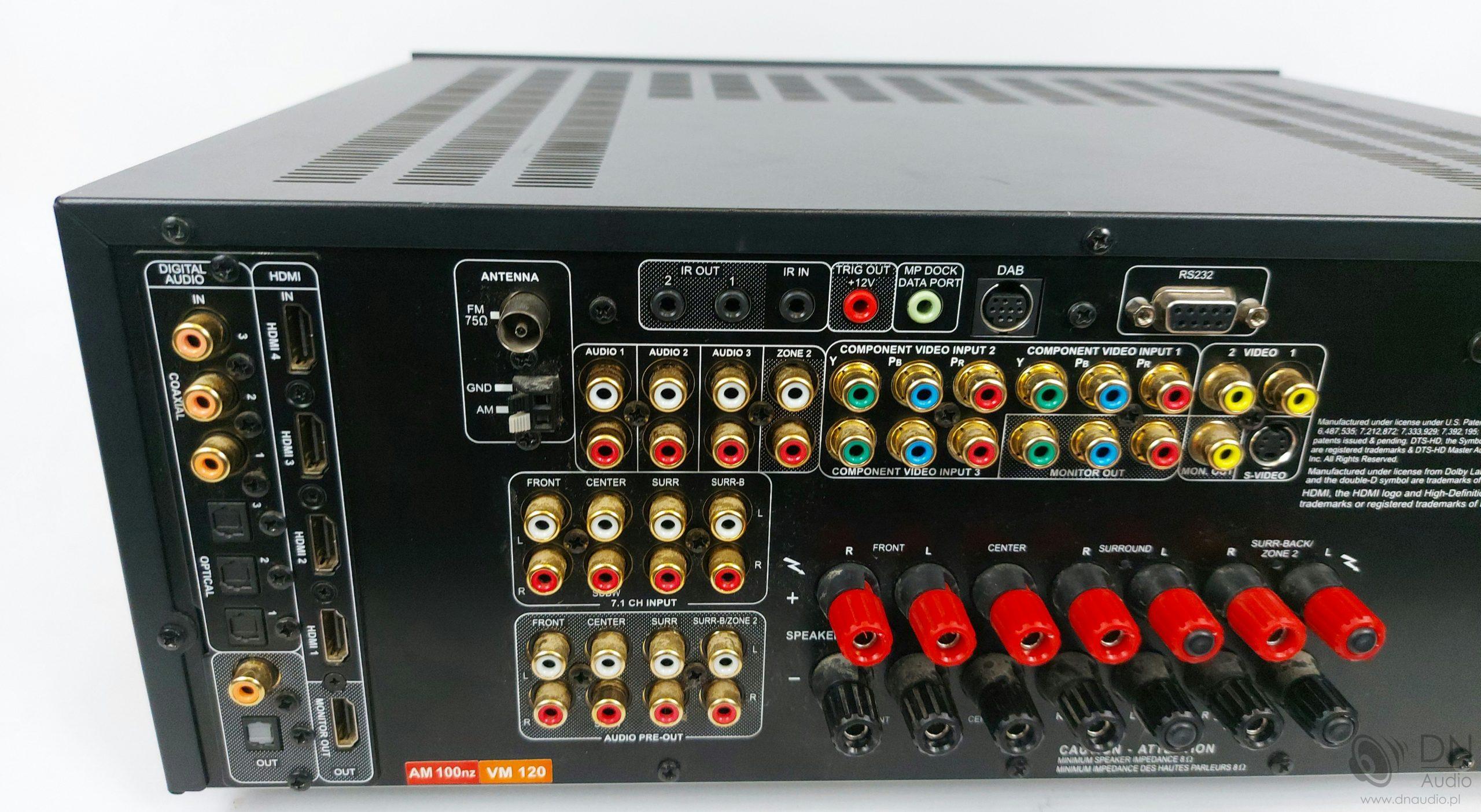 “7-kanałowy amplituner obsługujący moduły MDC oraz najpopularniejsze formaty dźwięku i technologie wideo. Urządzenie dostarcza moc 7 x 110 W.