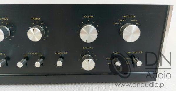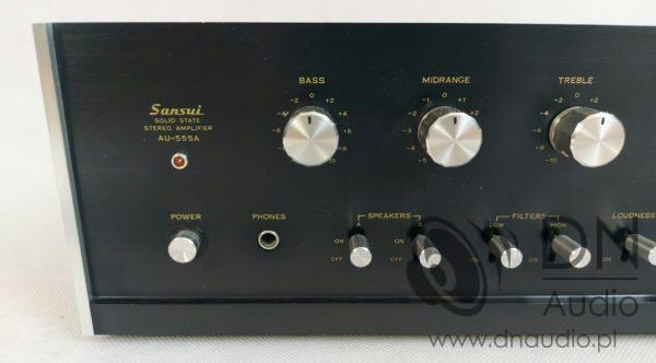 Sansui AU-555A tworzy szeroką sceną, charakteryzuje się selektywnością, pełną kontrolą pasm, wypełnieniem średnich tonów oraz zdolnością do podbicia miękkiego, nisko schodzącego basu.