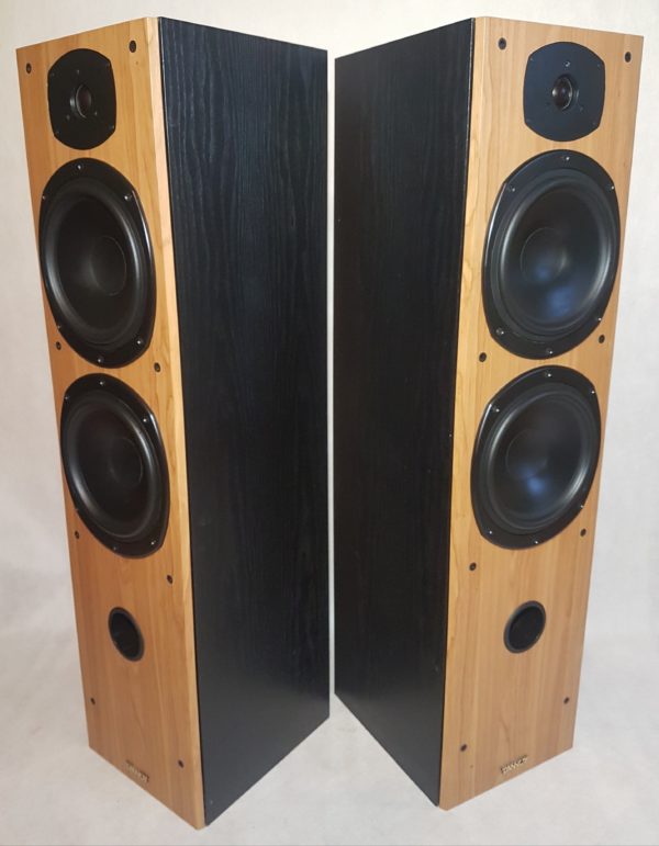 Stan wizualny – kolumny są dobrze zachowane. Obudowy posiadają ślady użytkowania w postaci rys, otarć – zgodnie z realnymi zdjęciami. Maskownice są poprzecierane – kwalifikują się do ponownego obszycia, posiadają wszystkie mocowania.